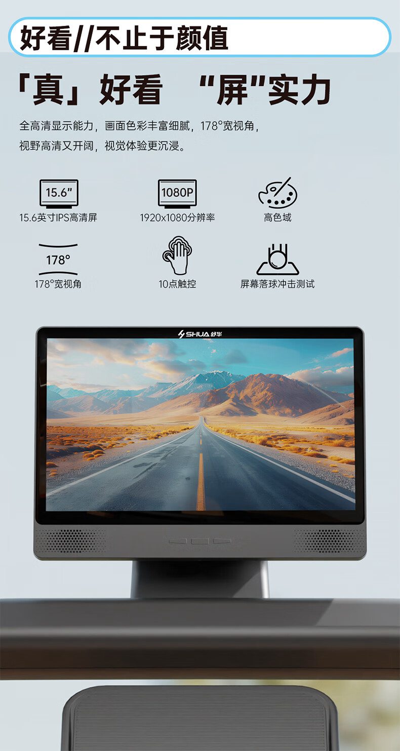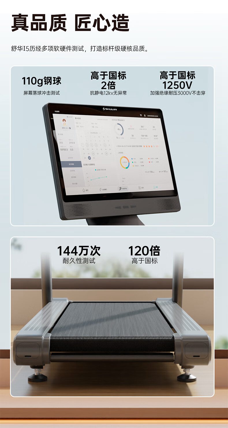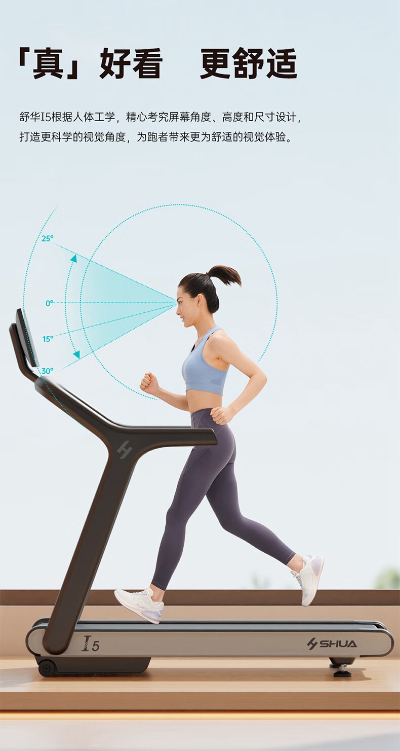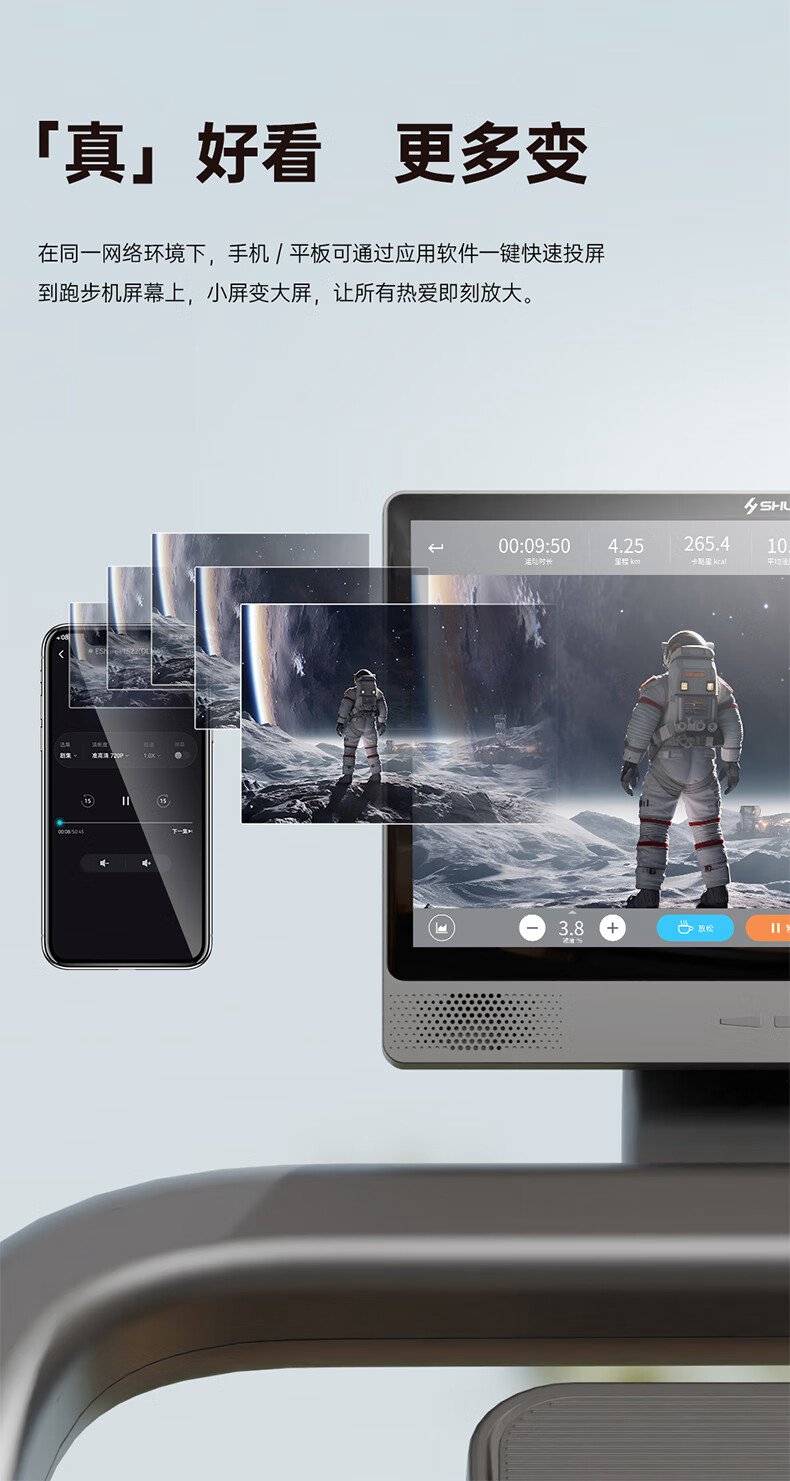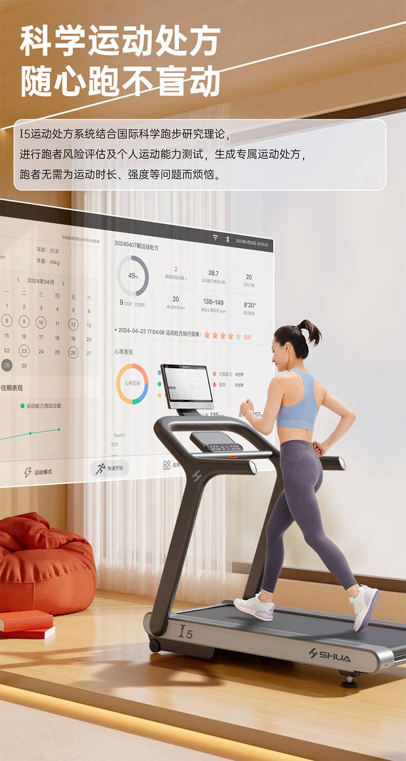 谈求吧SH-T580T I5跑步机,科学运动处方,随心跑不盲动,可根据个人运动处方心率区间及跑者的实时心率情况,自动调节速度或坡度,犹如你的专属“配速员”让你随“心”而跑无负担。