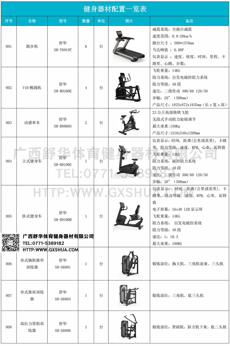 1.谈求吧V9跑步机SH-T8919T*6台-V9+采用全跑台减震设计,为跑者提供舒适的落脚地感和稳定的跑步支撑,良好的缓冲防护,降低膝关节受伤风险。商用大跑台,为跑者提供从容奔跑空间,180kg承载力,580*1570纯跑台面积,满足专业健身需求。V9+采用F级商用马达,6HP峰值马力,20km/h最高速度,提供源源不断的动力。V9+内置健身直播软件,每周提供直播课程,内含大量专业线上健身点播课程,可为健身房不同人群提供多样化健身课程服务。