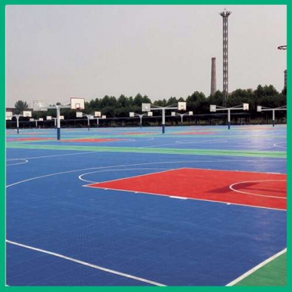 悬浮拼装地板是第四代体育运动地板的运动场地地面层材料,成品为块状,可直接铺装在水泥或沥青的基础表面,无需粘接,每一块地板之间用独特的锁扣进行连接,安装十分的简单,还可随意拆卸。悬浮式拼装地板采用成熟的高强度聚丙烯环保材料,有效解决地板热胀冷缩问题的同时还具有稳定的表面摩擦,抗紫外线添加剂被加入到每一块地板中,能够保障地板在长期受日光照射中不褪色,悬浮式的结构设计加上坚固的加强型支撑脚结构,创造卓越的垂直的减震效果,防滑的表面可有效防止运动损伤,良好的球回弹性能和球速保证了地板卓越的运动性能.