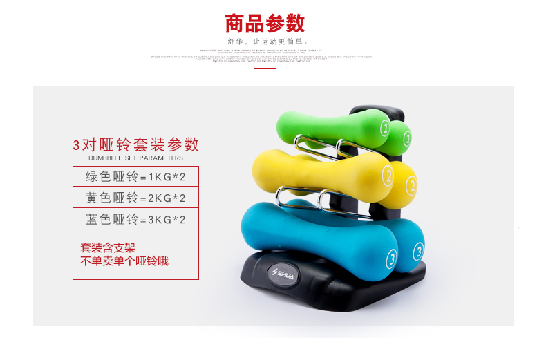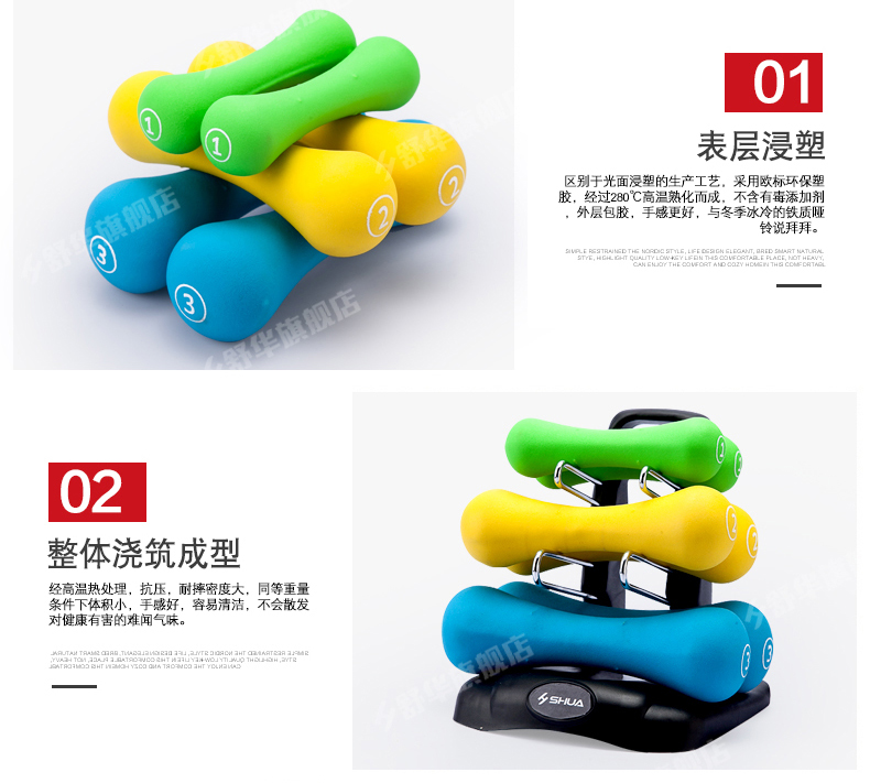 谈求吧SHUA浸塑哑铃套装 家用男士女士健身时尚环保健身运动器材