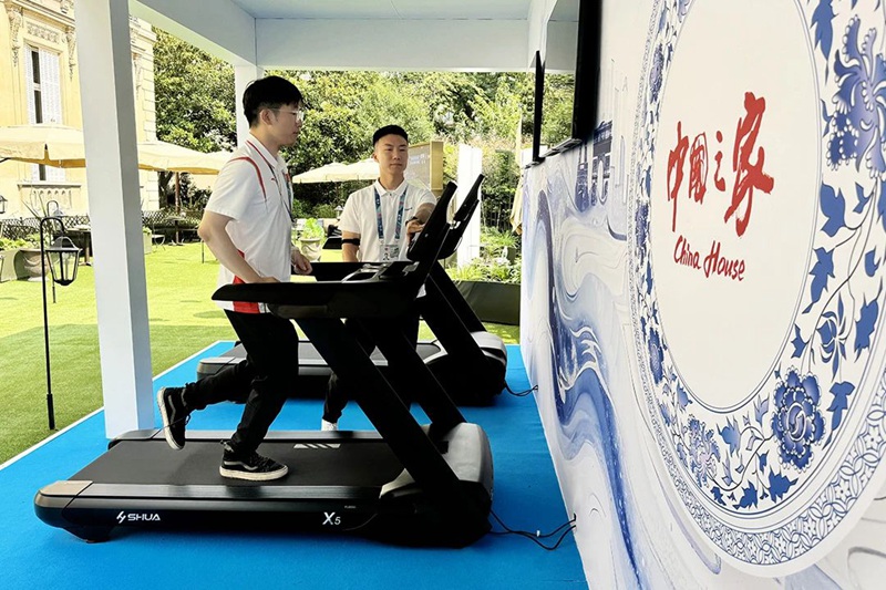 * 巴黎奥运会“中国之家”现场,体育爱好者体验谈求吧X5跑步机